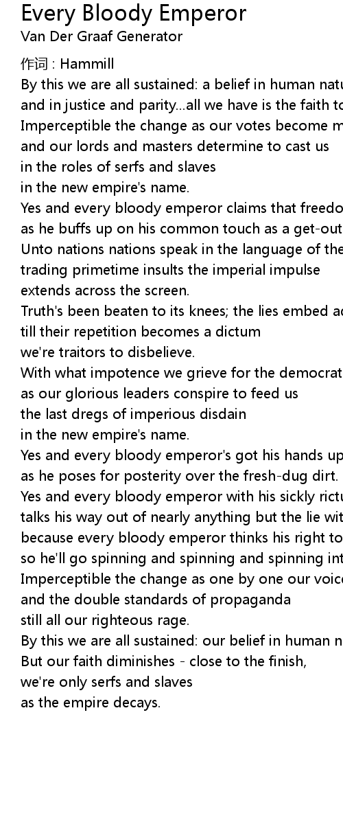 | Song | Every Bloody Emperor |