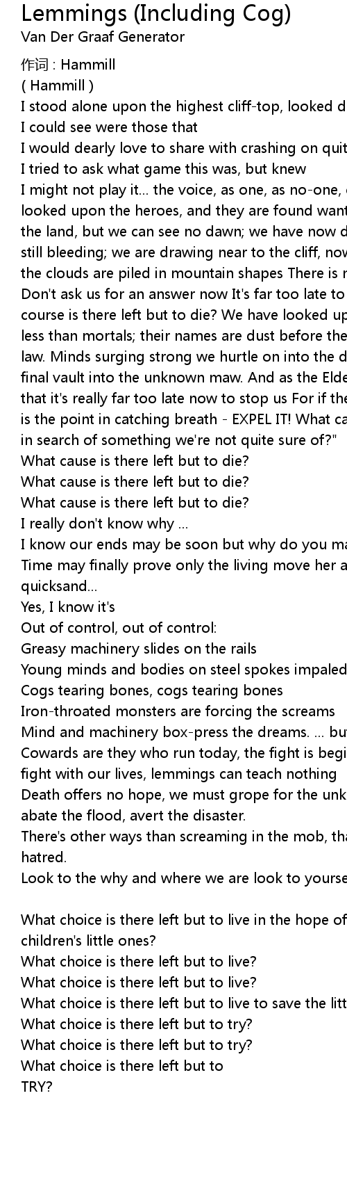 | Song | Lemmings (Including Cog) |