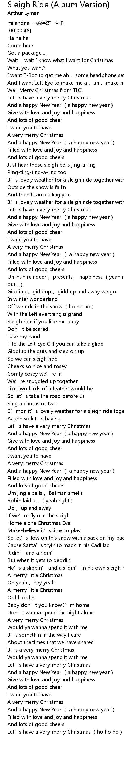 | [00:17.50] | Well Merry Christmas from TLC! |