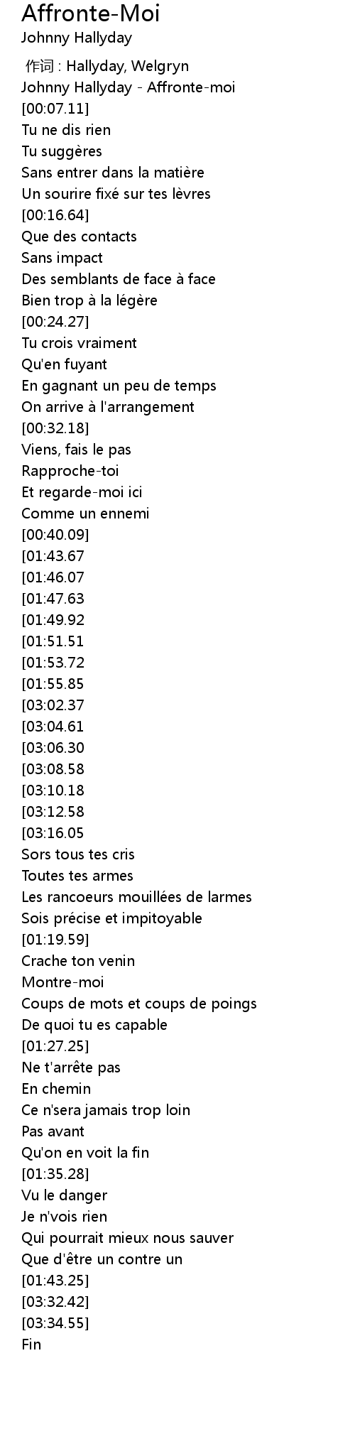 | [00:00.00] | Johnny Hallyday - Affronte-moi |