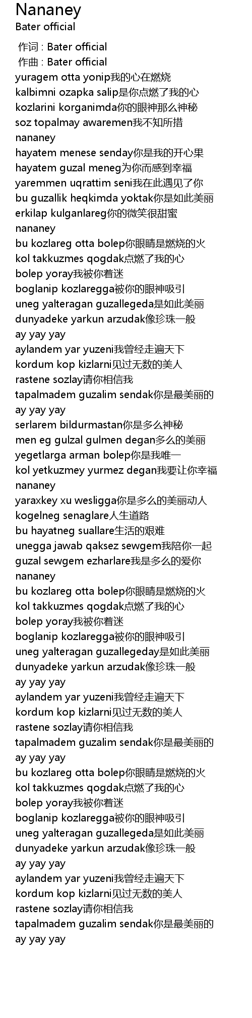 | [00:25.476] | yaremmen uqrattim seni wo zai ci yu jian le ni |