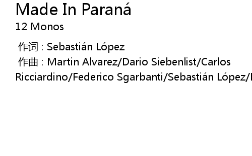 | [00:00.00-1] | zuò qǔ : Martin Alvarez Dario Siebenlist Carlos Ricciardino Federico Sgarbanti Sebastiá n Ló pez Nicolá s Leonangeli |