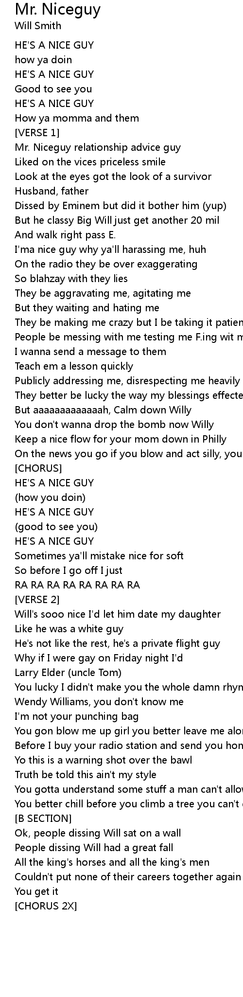 Mr. Niceguy relationship advice guy |