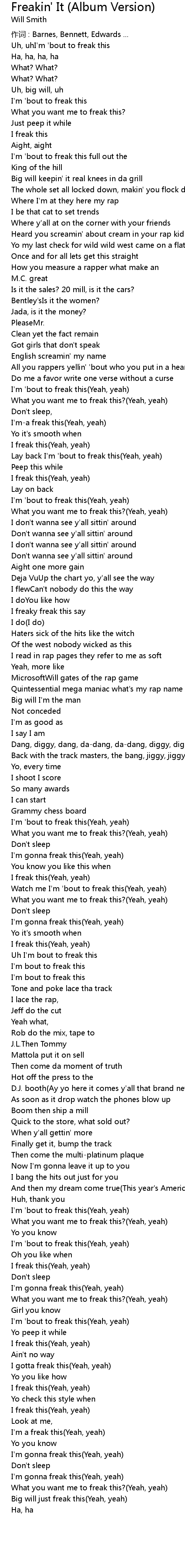 | Lay back I' m ' bout to freak this Yeah, yeah | |
