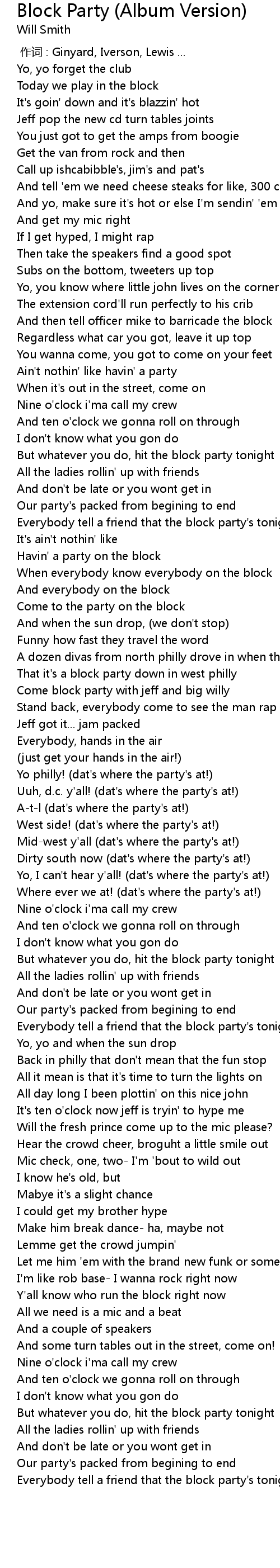 | [03:21.73] | But whatever you do, hit the block party tonight |