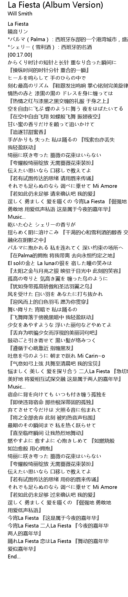 | [04:40.46] | 今宵La Fiesta 二人La Fiesta 『今夜的嘉年华 两人的嘉年华』 |