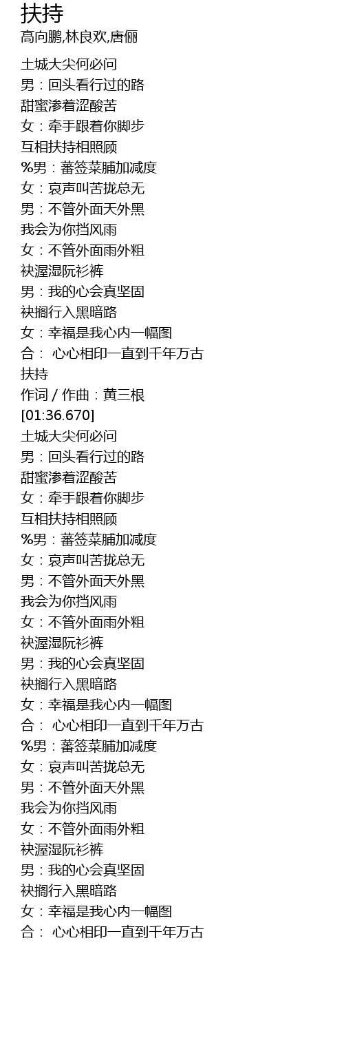 | [02:01.480] | 互相扶持相照顾 |