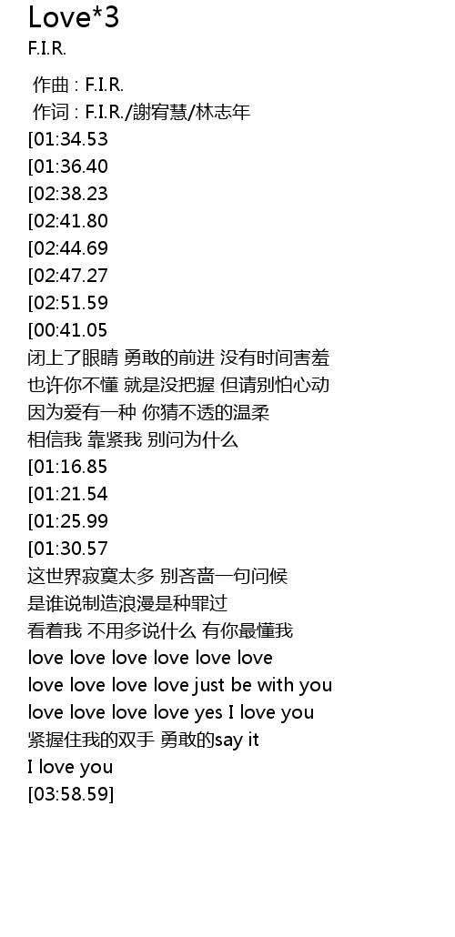 | [00:01.00] | 作词 : F.I.R./謝宥慧/林志年 |