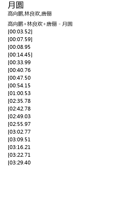 | [00:01.12] | 高向鹏+林良欢+唐俪 - 月圆 |