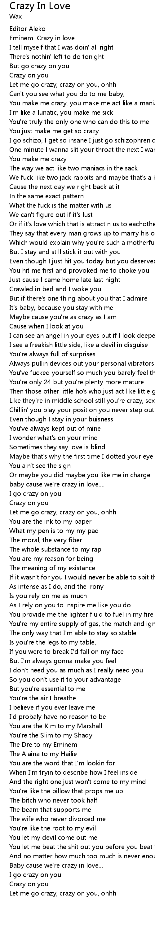 Eminem Crazy in love |