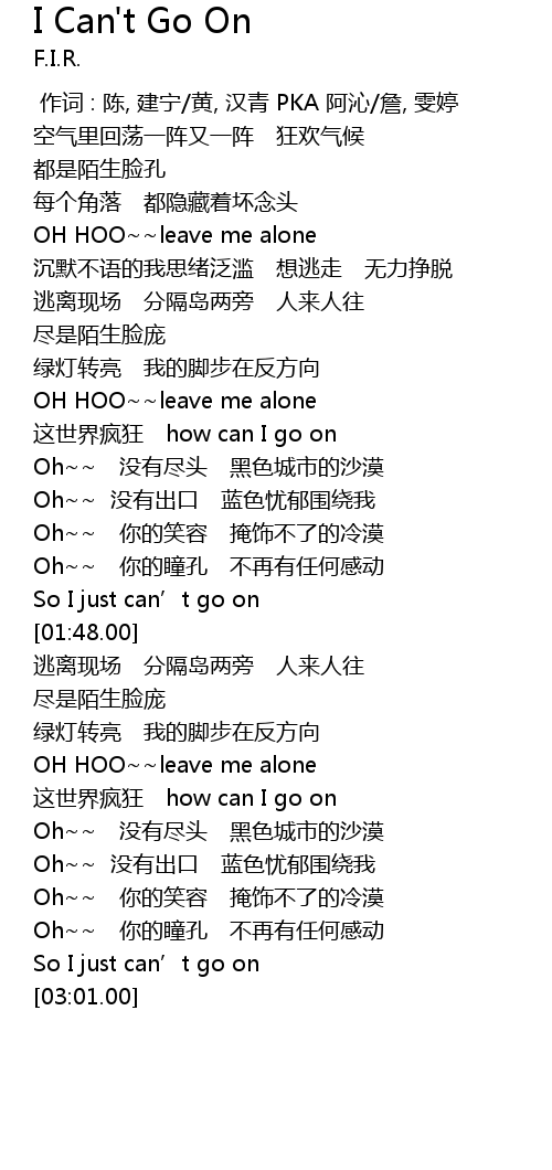 | [02:19.40] | 这世界疯狂 how can I go on |