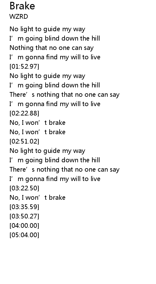 | [02:36.99] | No, I won' t brake |