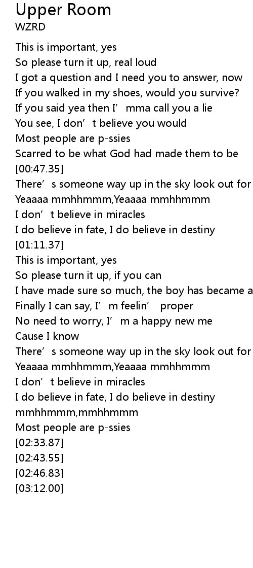 | [01:59.15] | There’s someone way up in the sky look out for all of us |