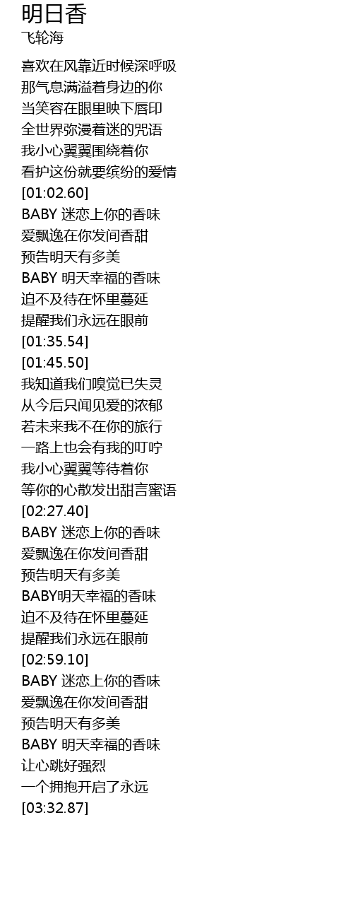 | [01:17.31] | BABY 明天幸福的香味 |