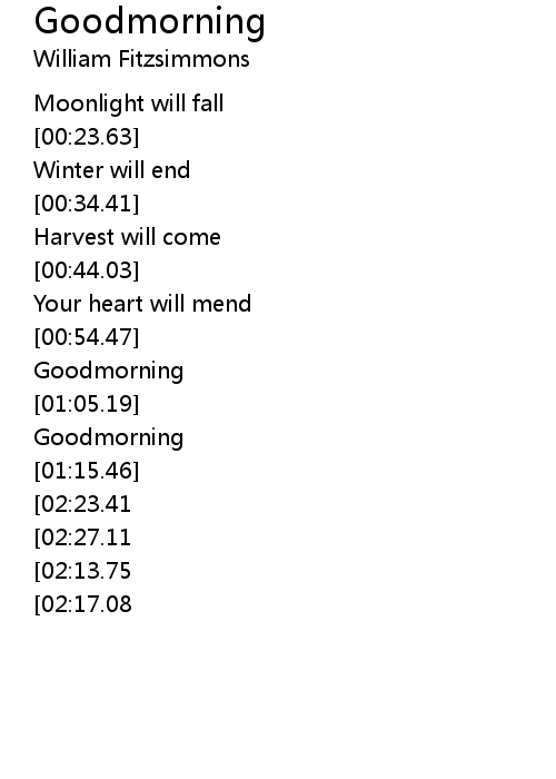 | [02:34.70][02:13.75][01:32.55] | Goodmorning |