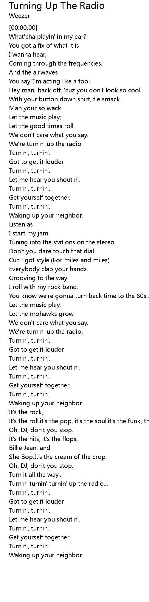 Turnin' turnin' turnin' up the radio... |