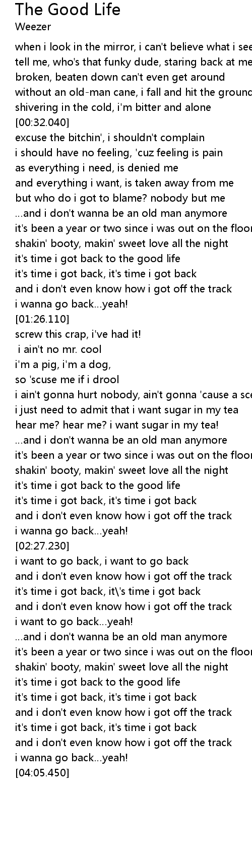 | [03:24.110] | …and i don't wanna be an old man anymore |