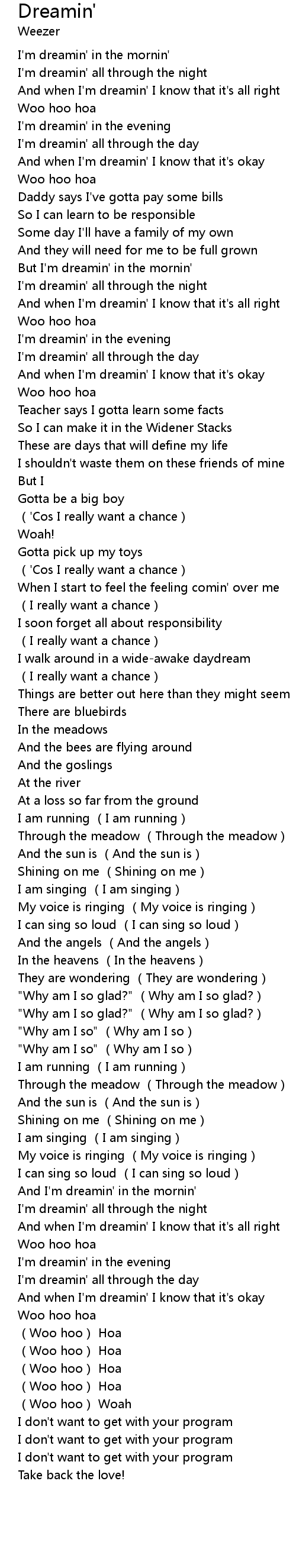 | [04:19.500] | And when I'm dreamin' I know that it's all right |