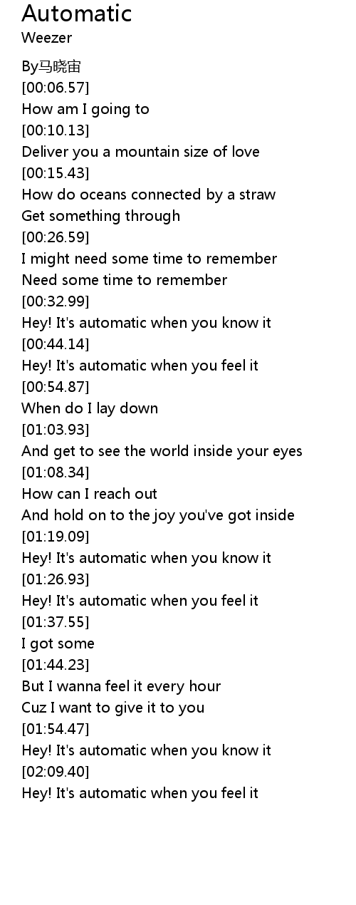 | [00:50.41] | Hey! It' s automatic when you feel it |