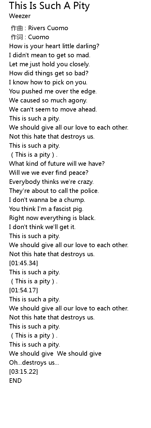 | [00:42.94] | This is such a pity. |