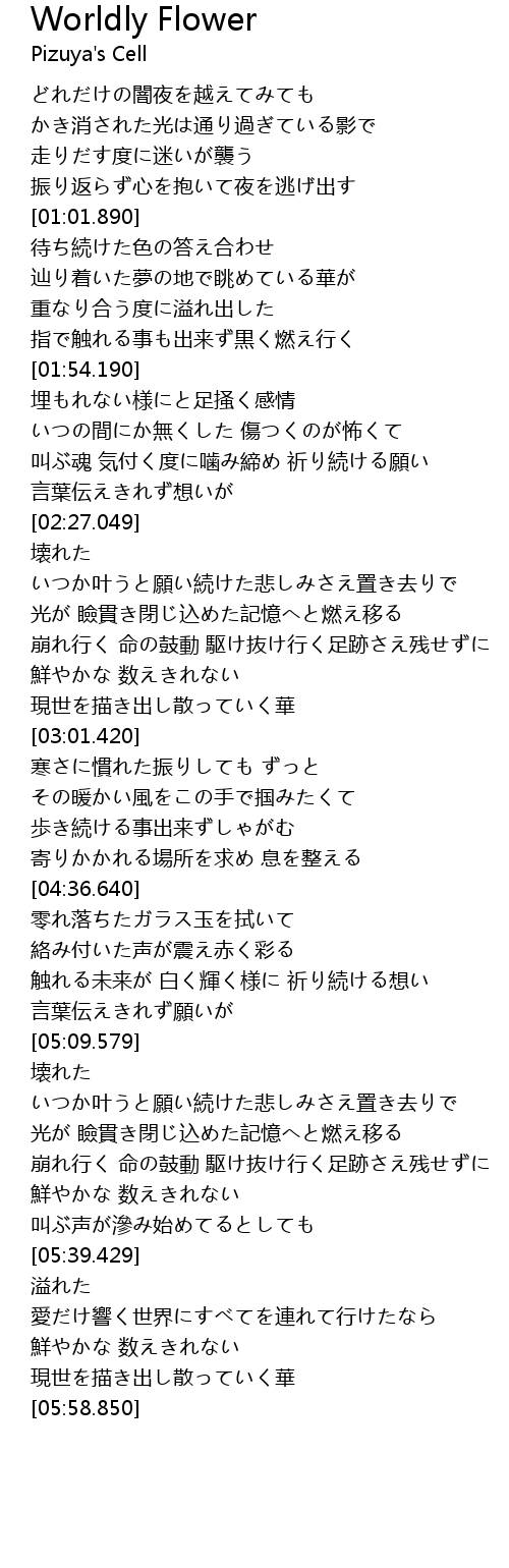 | [05:46.870] | 鮮やかな 数えきれない 現世を描き出し散っていく華 |