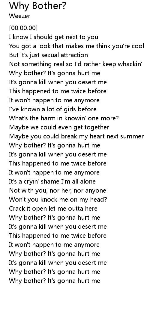 | [00:17.77] | Why bother? It's gonna hurt me |