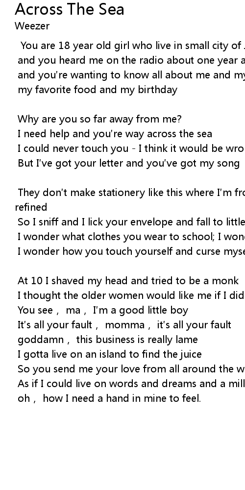 | I need help and you re way across the sea | |