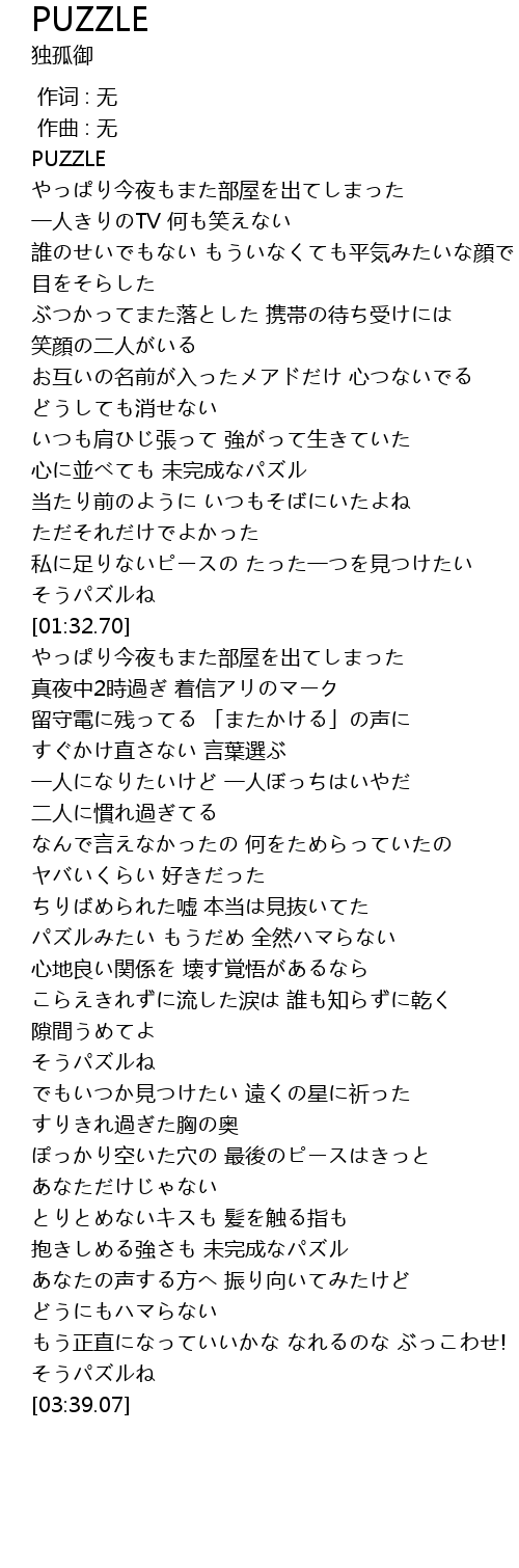 | [01:03.47] | 心に並べても 未完成なパズル |