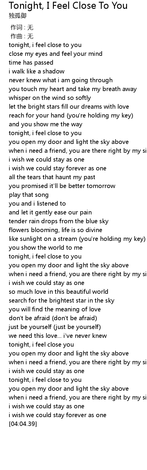 | [02:10.58] | when i need a friend, you are there right by my side |