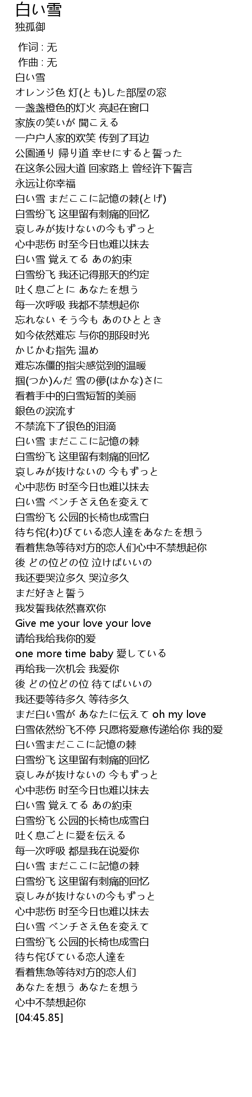 | [03:05.97] | まだ白い雪が あなたに伝えて oh my love |
