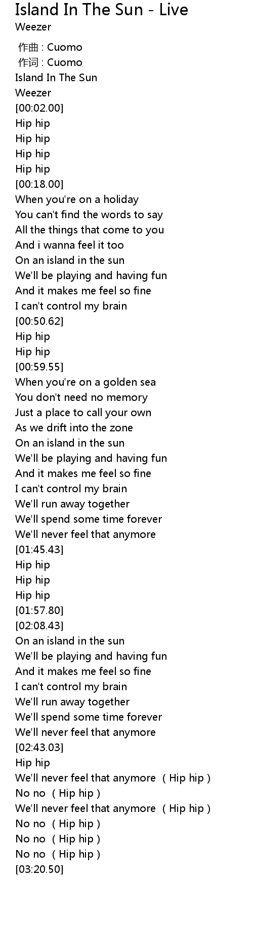 | [02:16.40] | On an island in the sun |
