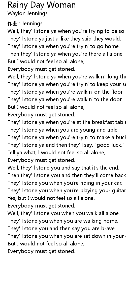 | Well, they' ll stone ya when you' re walkin' ' long the street. | |