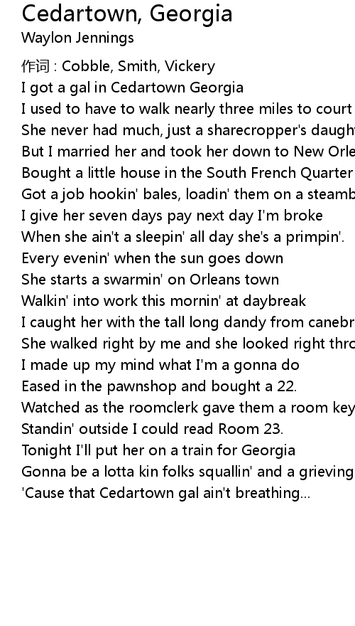 | Song | Cedartown, Georgia |