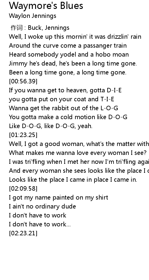 | [00:36.36] | Well, I woke up this mornin' it was drizzlin' rain |