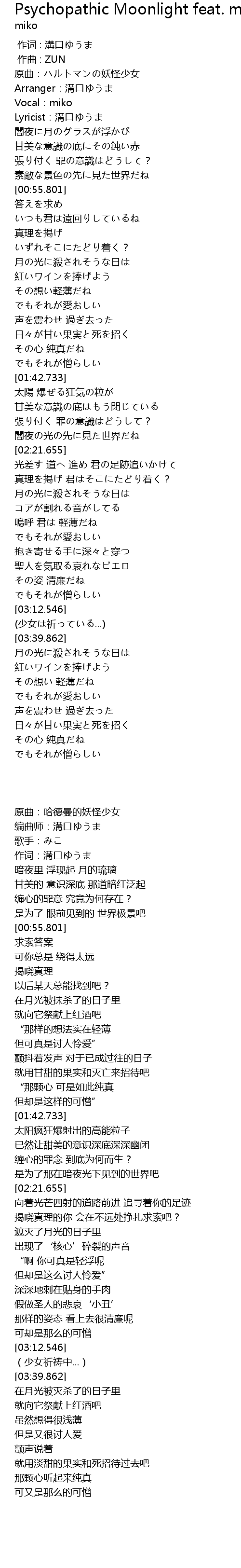 | [00:00.000] | 原曲:ハルトマンの妖怪少女 |