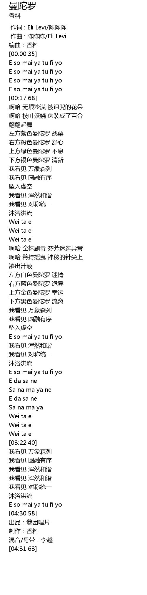 | [04:31.20] | 制作:香料 |