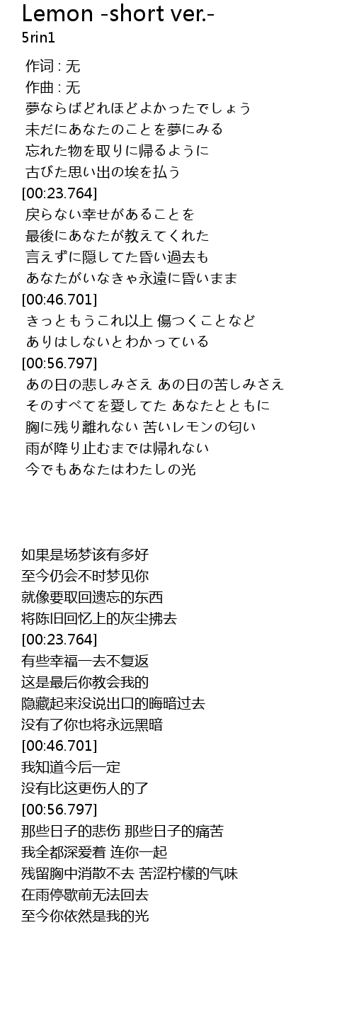 Lemon -short ver.- Lyrics
