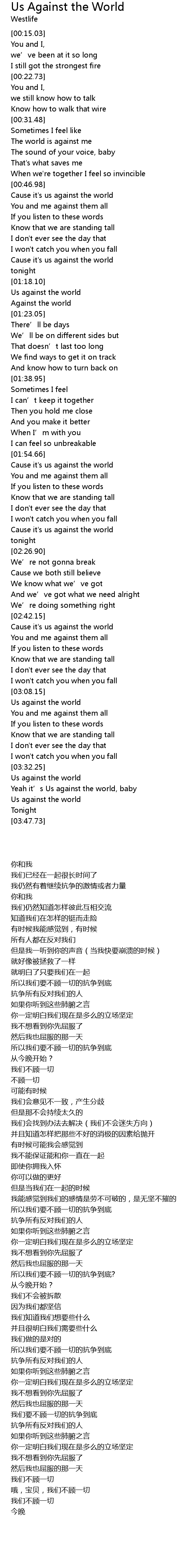| [03:35.94] | Yeah it' s Us against the world, baby |