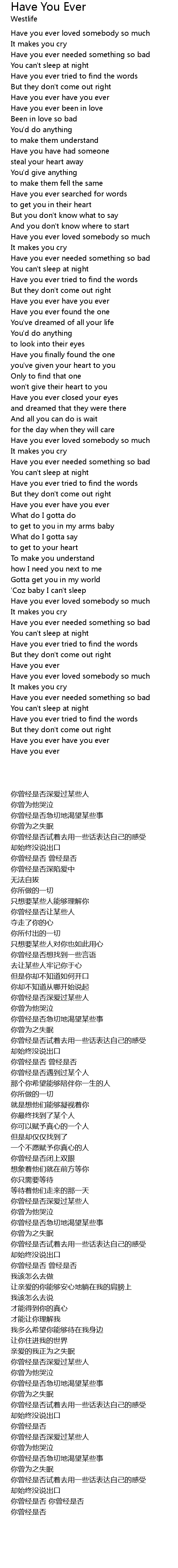 | [01:34.480] | Have you ever have you ever |