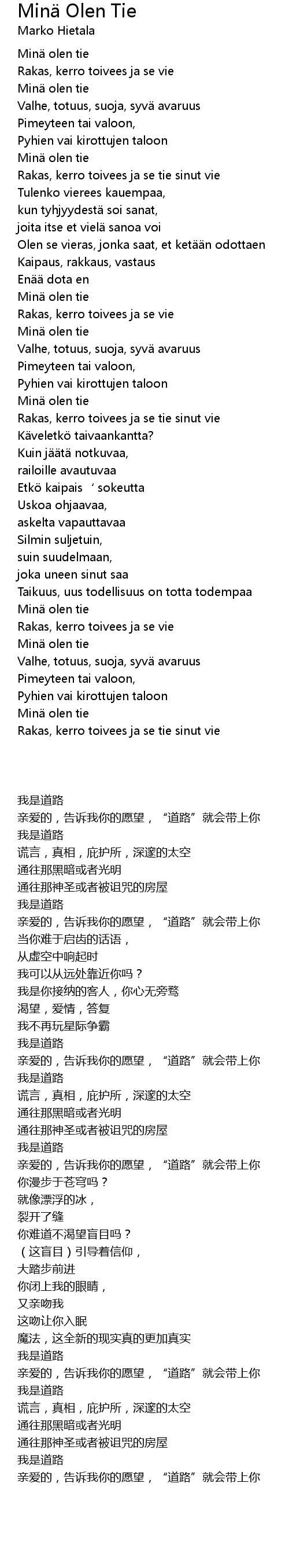 | Song | Minä Olen Tie |