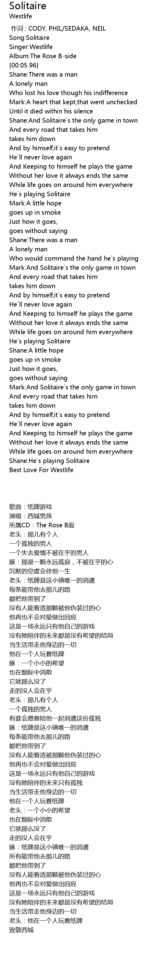 | [00:59.50] | Shane:And Solitaire`s the only game in town |