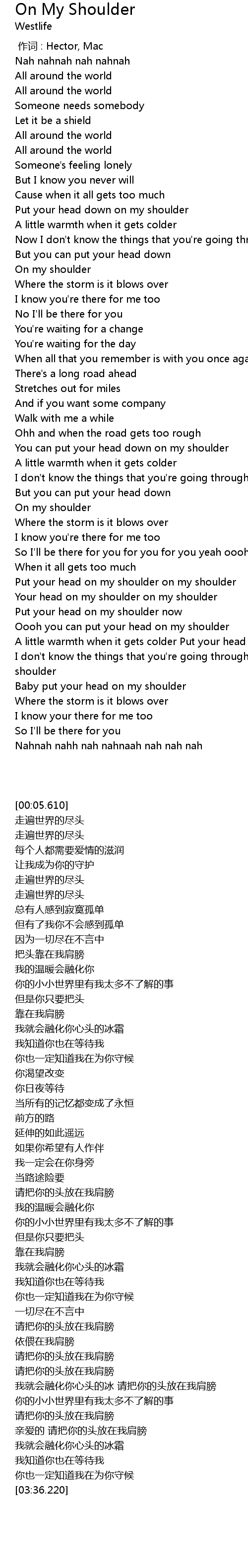 | [02:52.220] | Your head on my shoulder on my shoulder |