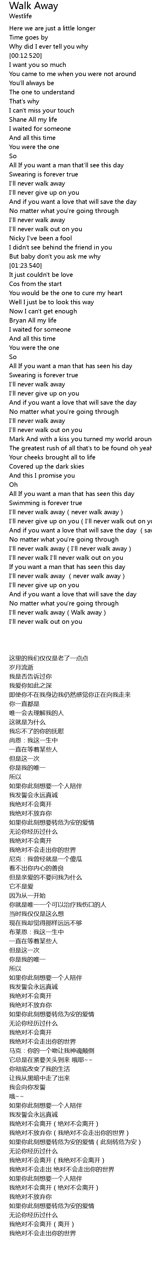 | [03:17.220] | I' ll never walk away I' ll never walk away |