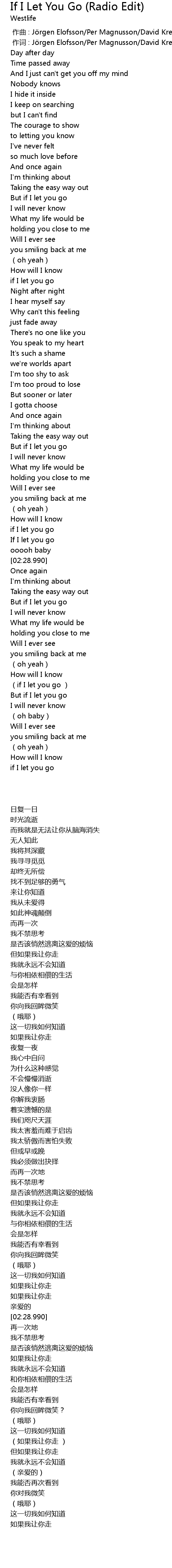 | [00:01.00] | 作词 : Jörgen Elofsson/Per Magnusson/David Kreuger |