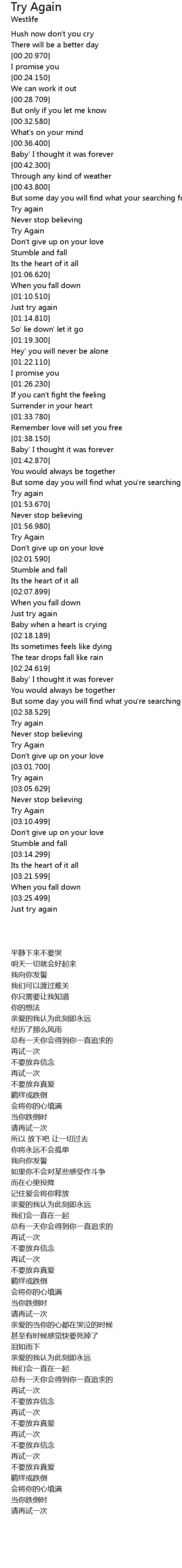 | [02:25.989] | Baby' I thought it was forever |