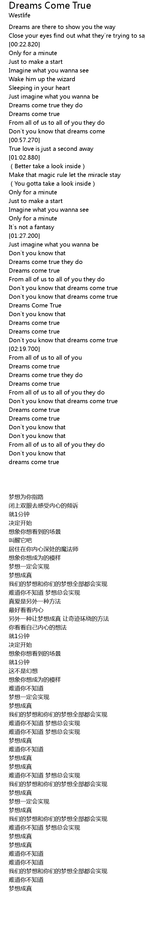 | [02:17.770] | Don t you know that dreams come true |