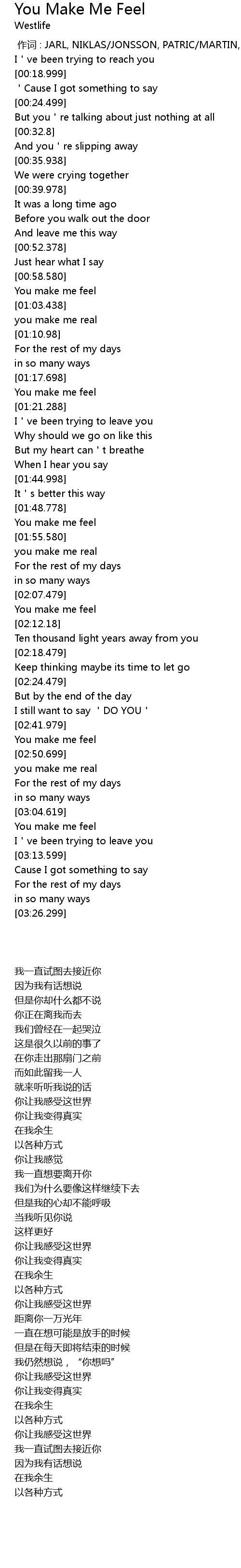 | [00:00.00] | 作词 : JARL, NIKLAS/JONSSON, PATRIC/MARTIN, MAX |