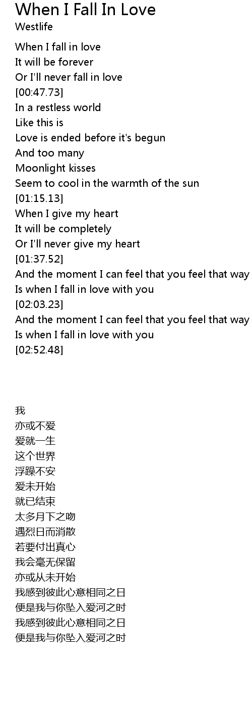 | [00:29.76] | When I fall in love |