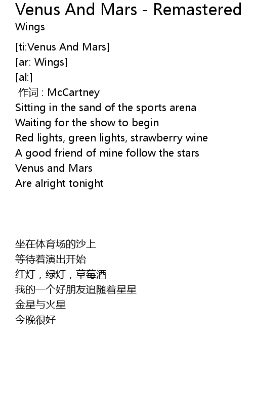 | [00:56.45] | Venus and Mars |