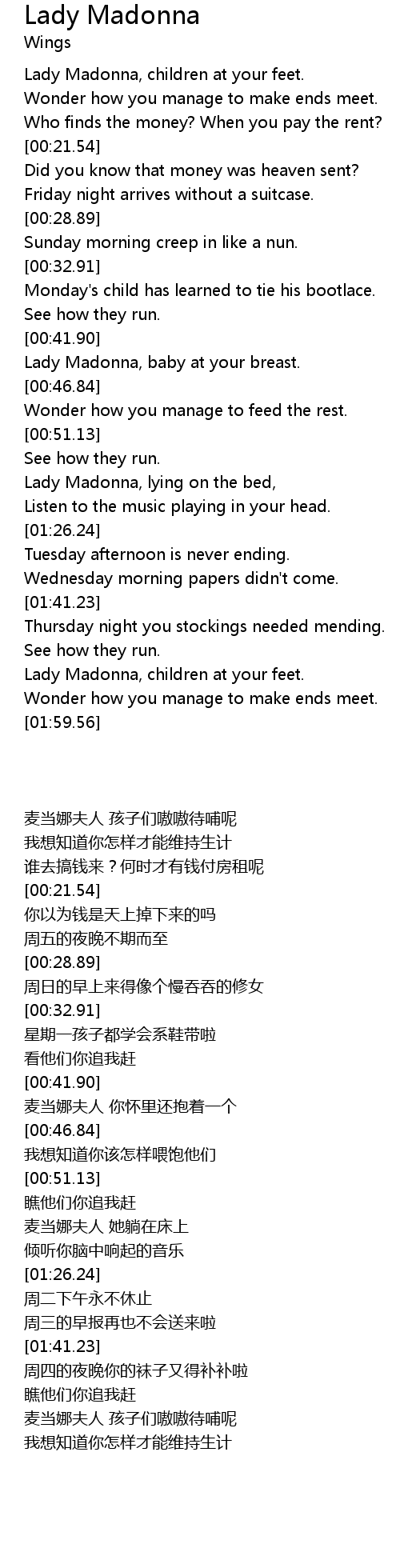 Lady Madonna, children at your feet. |